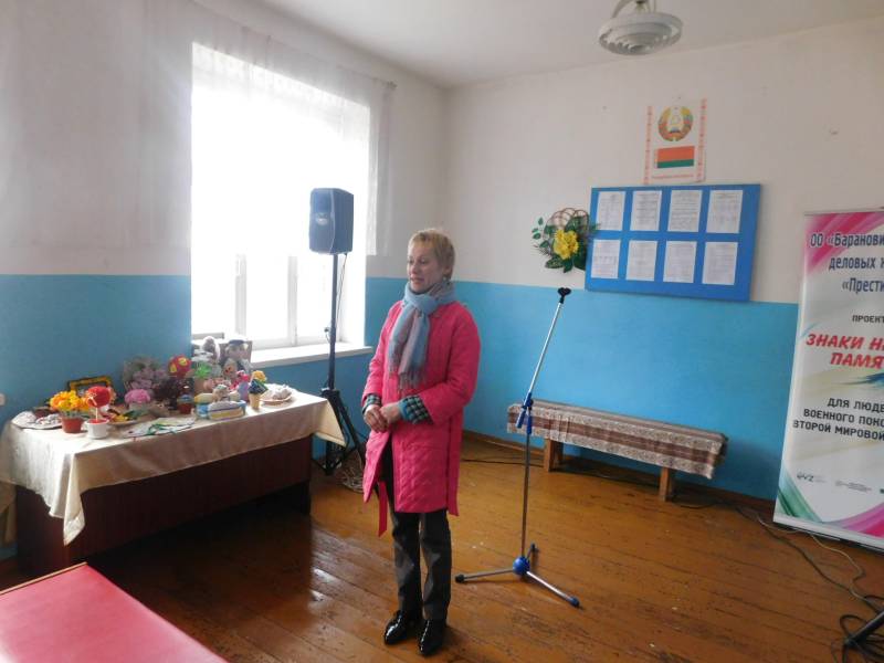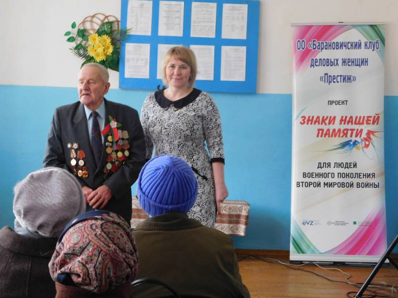 Представитель Общественной организации «Барановичский клуб деловых женщин «Престиж» Наталья Биттнер ознакомила присутствующих о ходе реализации проекта «Знаки нашей памяти», его целях и задачах, направленных на улучшение качества жизни граждан, пострадавших от нацистских преследований в период Второй мировой войны, привлечения внимания молодежи к роли пожилых людей в обществе, их потребностям и интересам. Узникам, проживающим на территории Городищенского сельского совета (Филончик Я.А., Решотка О.Н., Кривулько Р.П., Вайтушко Л.Г., Позняк Е.Н.) были вручены цветы.