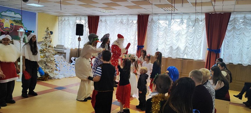 В Доме культуры агрогородка Мирного на праздничное представление собрались особенные детки со своими родителями. Приехали поздравить ребят с наступающими праздниками заместитель председателя Барановичского райисполкома Михаил Борисевич, начальник управления по труду, занятости и социальной защите райисполкома Светлана Денищик, заместитель начальника управления Светлана Жук, директор ТЦСОН Барановичского района Снежана Мороз, отец Геннадий.