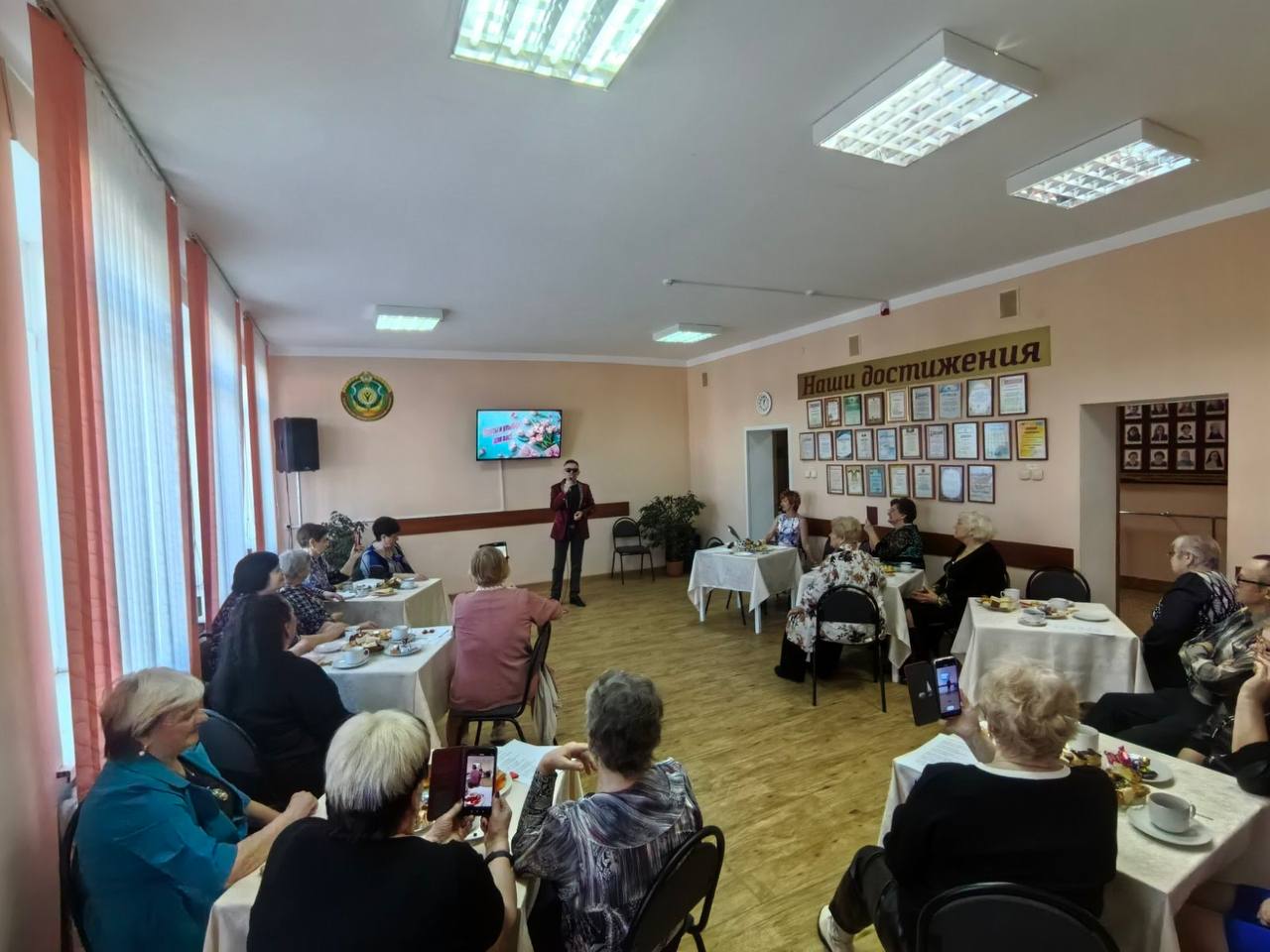Международного женского Дня 8 марта был организован вечер с чаепитием, домашними пирогами и сладкой выпечкой. Встреча прошла в теплой домашней обстановке: исполняли старые добрые задушевные песни, танцевали любимые танцы, любовались выступлением руководителя народной вокально – инструментальной группы «Явар» - Пономаренко М.В. ГУК "Барановичский городской Дом культуры".
