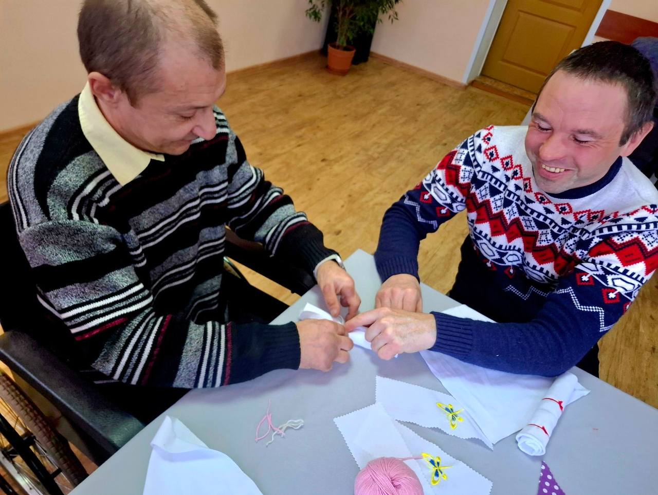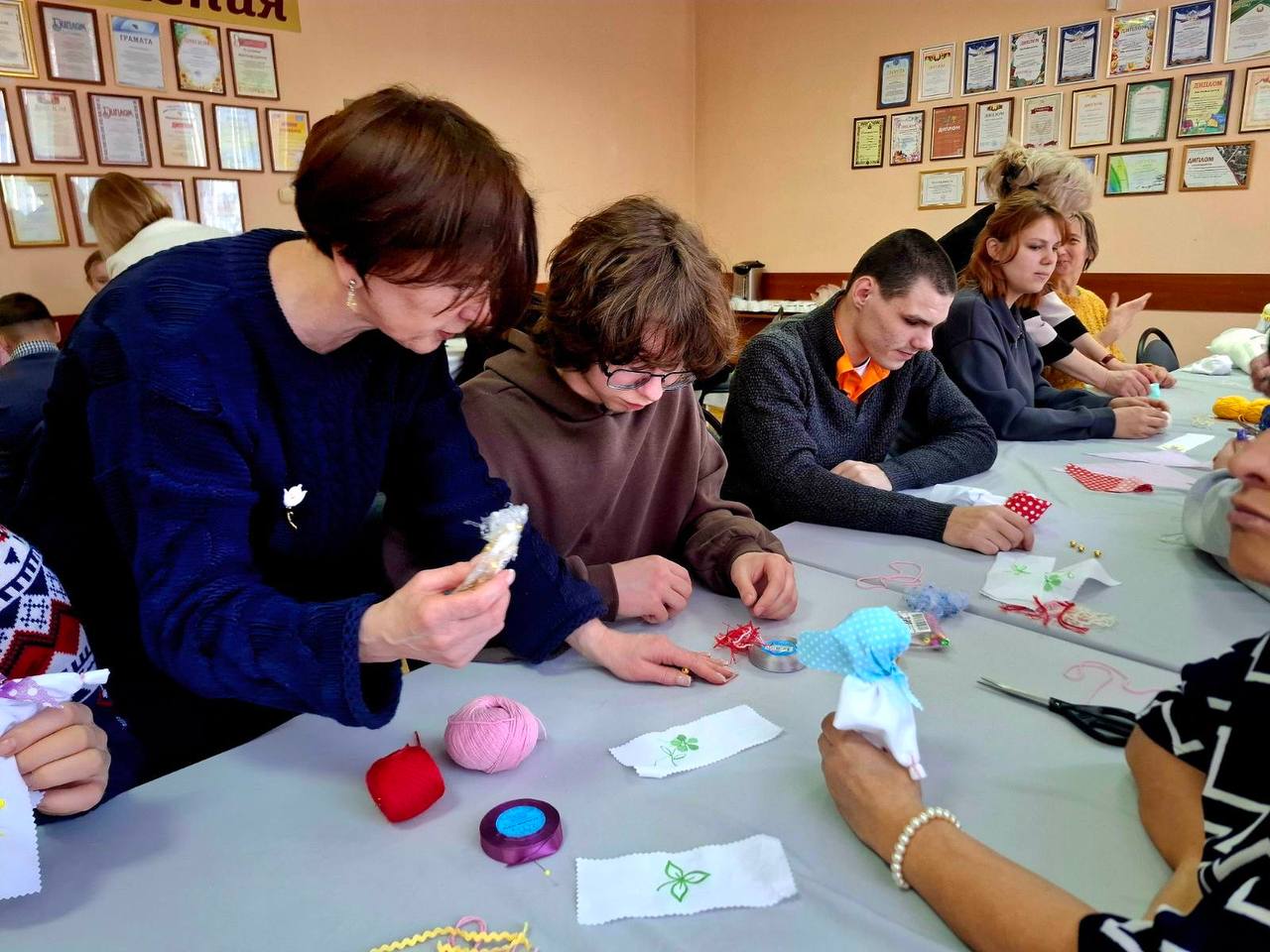 В ГУ "Территориальный центр социального обслуживания населения Барановичского района" 06.03.2026 состоялась яркая, запоминающаяся встреча членов клуба "Родные сердца", подопечных отделения социальной реабилитации, абилитации инвалидов и дневного пребывания для граждан пожилого возраста, с волонтерами УО "Барановичский государственный колледж легкой промышленности имени В.Е.Чернышева". Мастер - класс по изготовлению куклы-мотанки "Мамушка" прошел увлекательно и весело. Студенты совместно с людьми с инвалидностью приготовили праздничные куклы, которые сразу же вручили своим мамам. Подопечные отделения поблагодарили гостей яркими концертными номерами и подарили сладкие пироги, которые станут приятным воспоминанием о теплой встрече