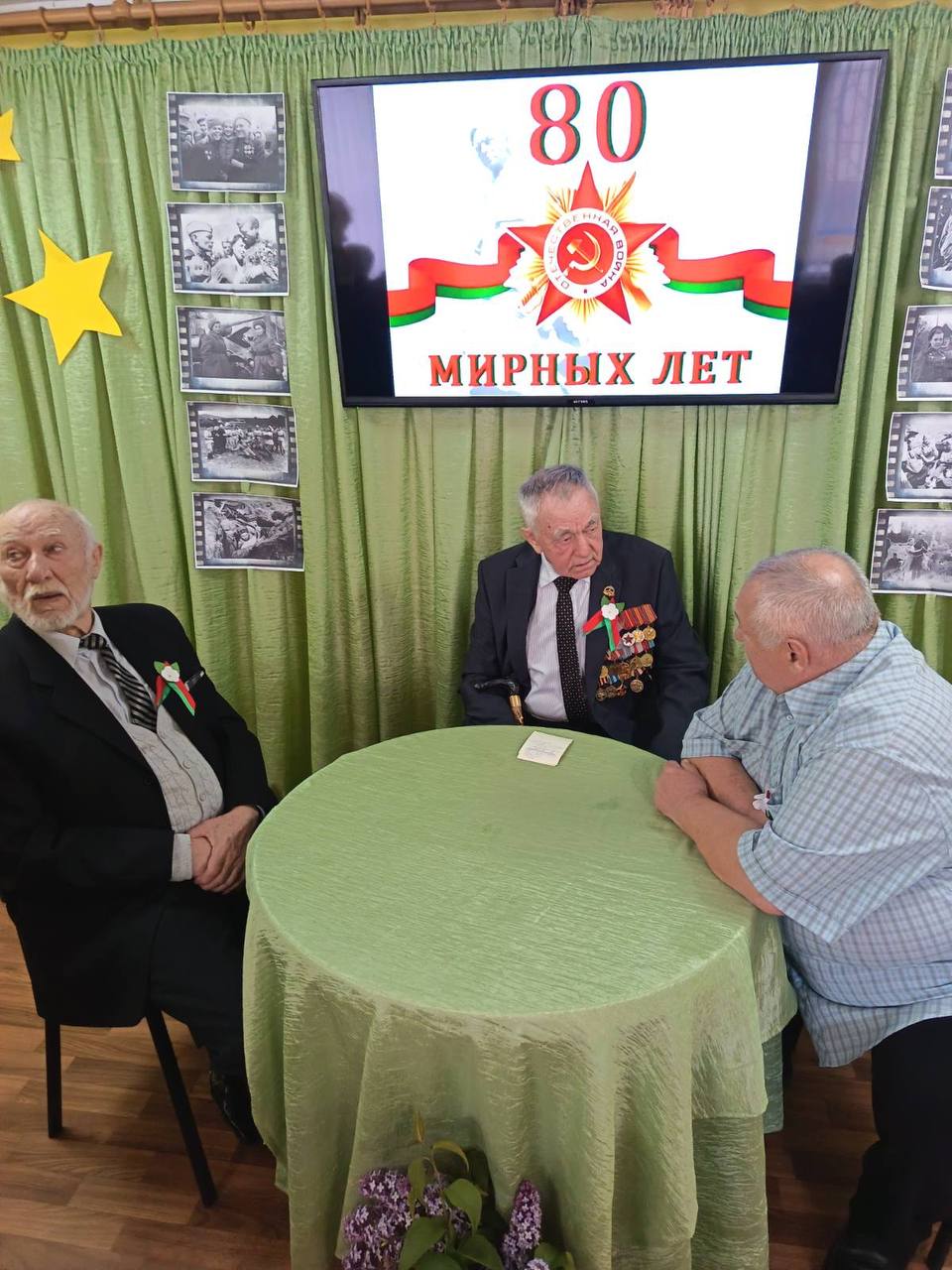 В стационарном социальном пункте ГУ «Территориальный центр социального обслуживания населения Барановичского района»ежегодно проводятся мероприятия, посвященные празднованию Великой Победы. В 80-ю годовщину Победы мы вспомнили о героизме защитников Родины, поблагодарили ветеранов, детей войны и офицеров запаса. Гости рассказали о своих трудных моментах жизни, делились воспоминаниями о военной жизни.