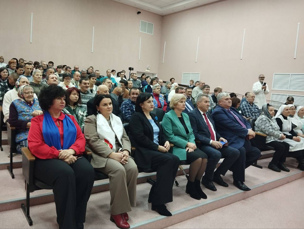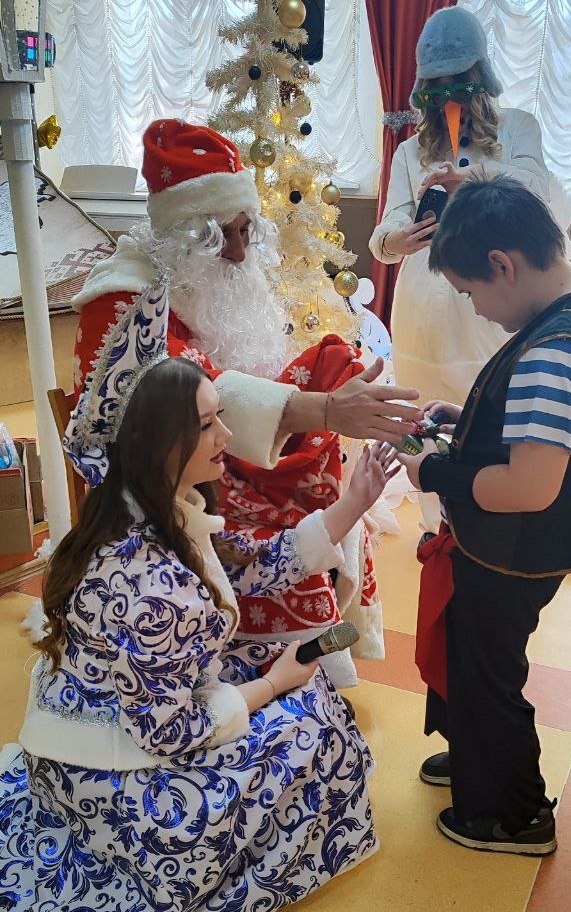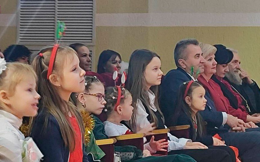 В Доме культуры агрогородка Мирного на праздничное представление собрались особенные детки со своими родителями. Приехали поздравить ребят с наступающими праздниками заместитель председателя Барановичского райисполкома Михаил Борисевич, начальник управления по труду, занятости и социальной защите райисполкома Светлана Денищик, заместитель начальника управления Светлана Жук, директор ТЦСОН Барановичского района Снежана Мороз, отец Геннадий.