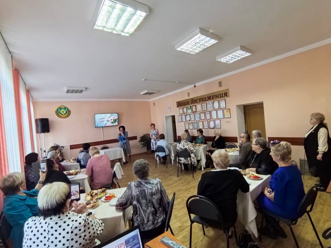 Международного женского Дня 8 марта был организован вечер с чаепитием, домашними пирогами и сладкой выпечкой. Встреча прошла в теплой домашней обстановке: исполняли старые добрые задушевные песни, танцевали любимые танцы, любовались выступлением руководителя народной вокально – инструментальной группы «Явар» - Пономаренко М.В. ГУК "Барановичский городской Дом культуры".