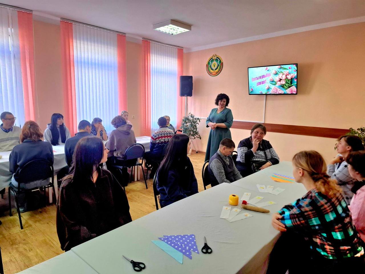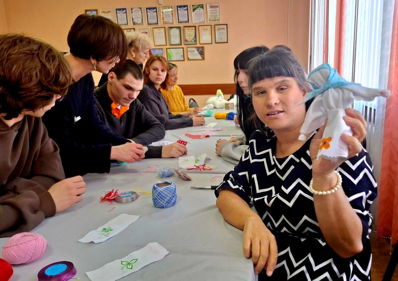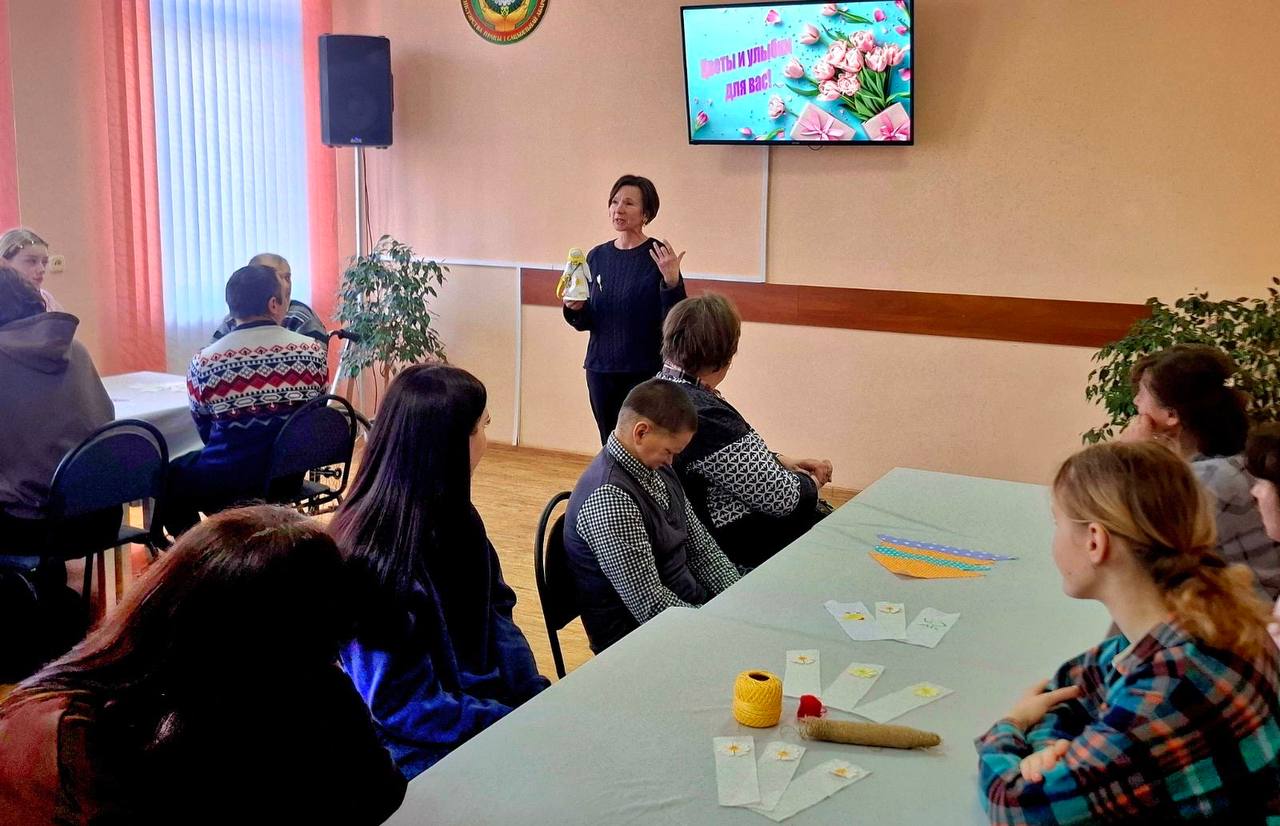 В ГУ "Территориальный центр социального обслуживания населения Барановичского района" 06.03.2026 состоялась яркая, запоминающаяся встреча членов клуба "Родные сердца", подопечных отделения социальной реабилитации, абилитации инвалидов и дневного пребывания для граждан пожилого возраста, с волонтерами УО "Барановичский государственный колледж легкой промышленности имени В.Е.Чернышева". Мастер - класс по изготовлению куклы-мотанки "Мамушка" прошел увлекательно и весело. Студенты совместно с людьми с инвалидностью приготовили праздничные куклы, которые сразу же вручили своим мамам. Подопечные отделения поблагодарили гостей яркими концертными номерами и подарили сладкие пироги, которые станут приятным воспоминанием о теплой встрече