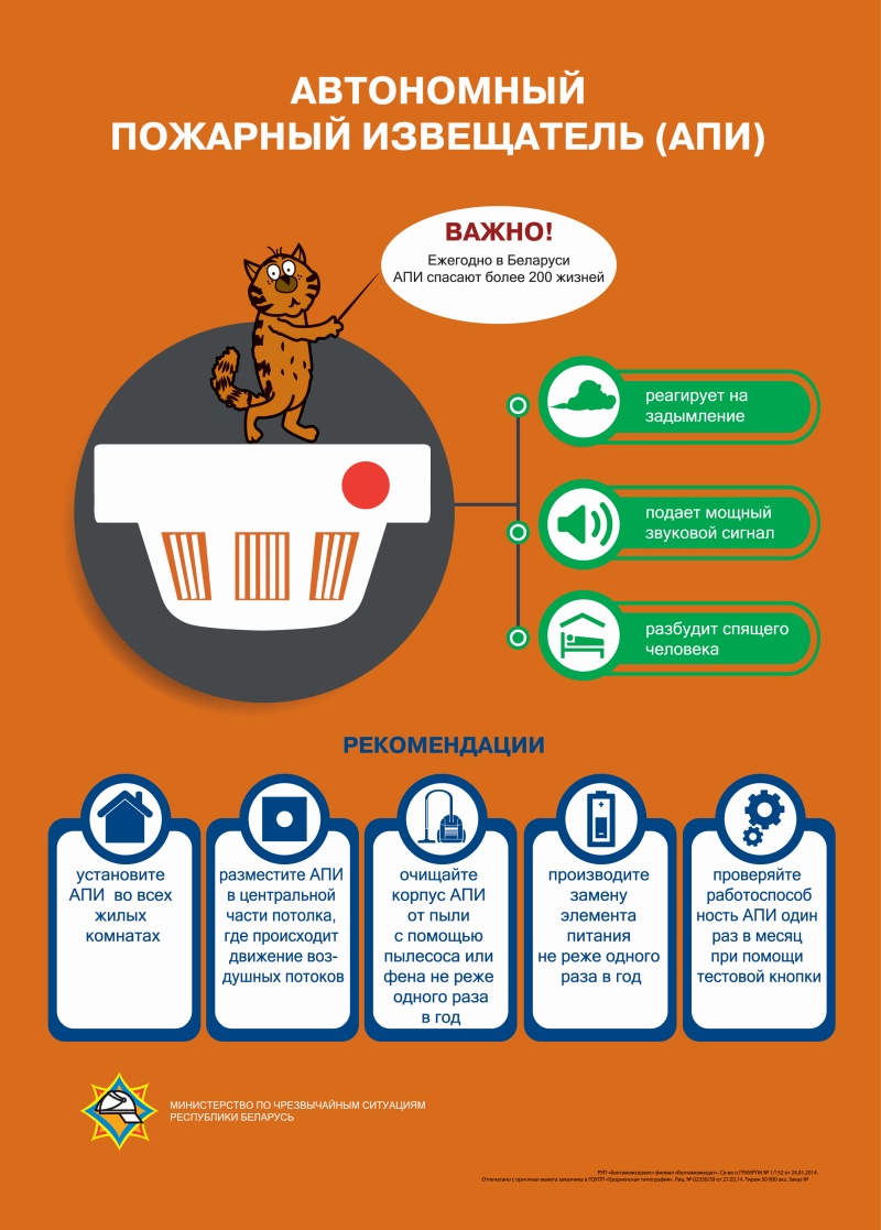 Не допускайте эксплуатации неисправного печного и электрического оборудования. Исключите курение в жилых помещениях, особенно в состоянии алкогольного опьянения. Храните спички и зажигалки в недоступных для детей местах. Установив автономный пожарный извещатель, вы можете быть уверены, что в случае малейшего задымления он подаст громкий звуковой сигнал и известит о ЧС, тем самым сохранит вам жизнь!